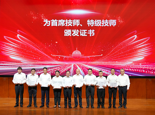 ▲王曙群、卢鹄为第五届“上飞工匠”颁奖